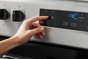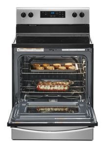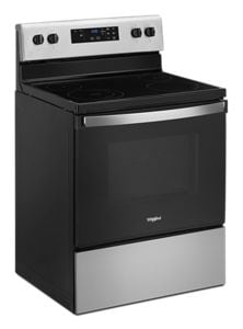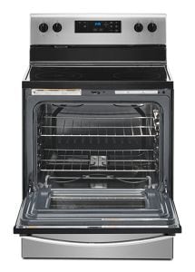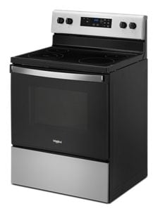 This Whirlpool® electric range with a dual element stove top helps you get dinner to the table, even on a hectic schedule. The Keep Warm setting prevents dinner from getting cold. Closed door broiling helps keep the kitchen comfortable. You can also avoid unintended use with an oven control lock.