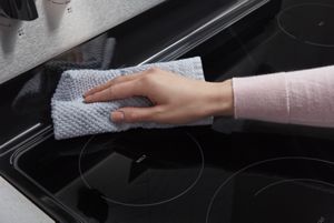 - Wiping up spills is simple with the Ceramic Glass Cooktop. The raised edges help contain spills, so you can easily clean the cooktop.
